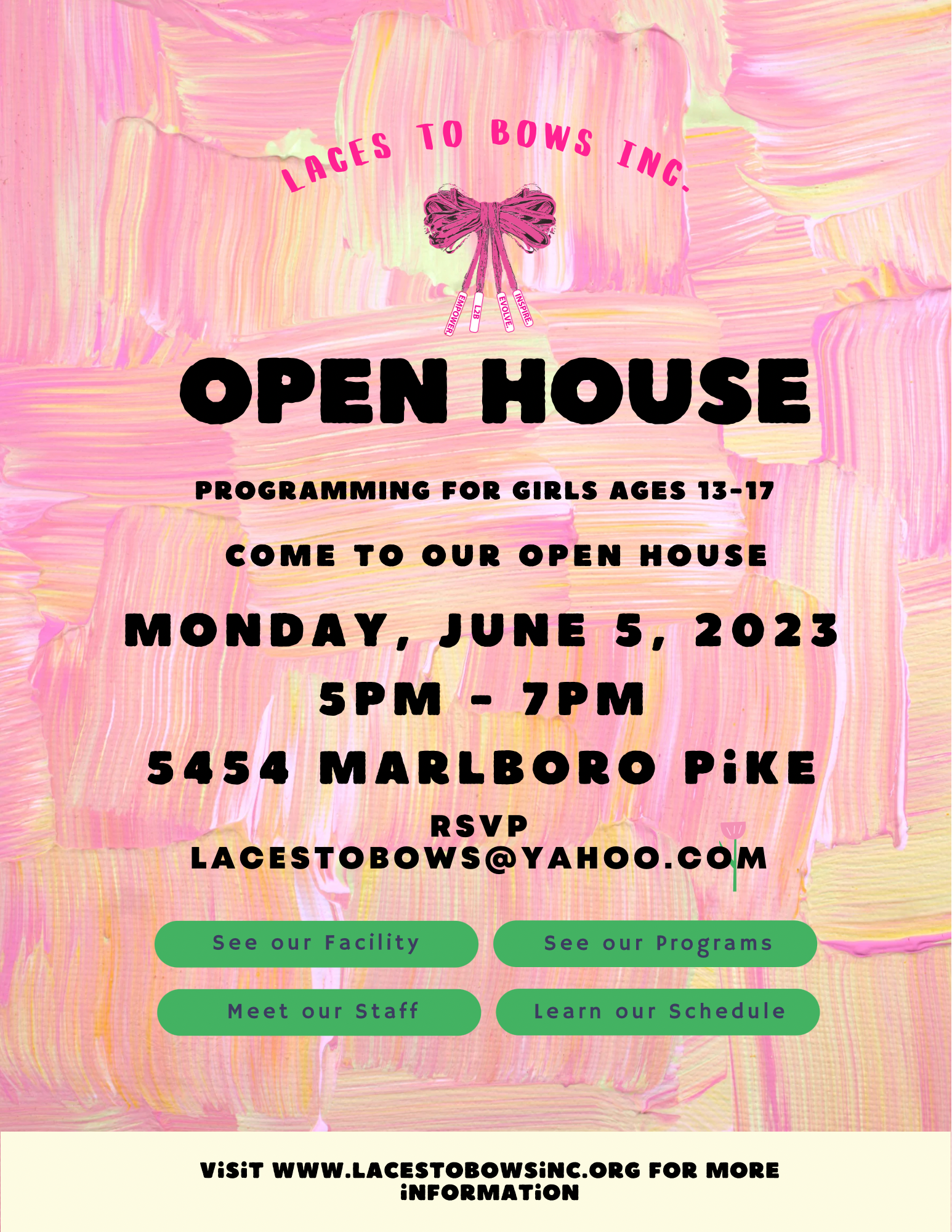 Laces To Bows Inc. OPEN HOUSE
